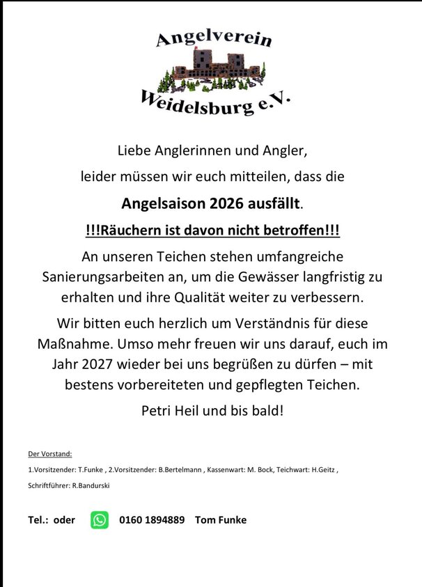Öffnungszeiten - Angelverein Weidelsburg